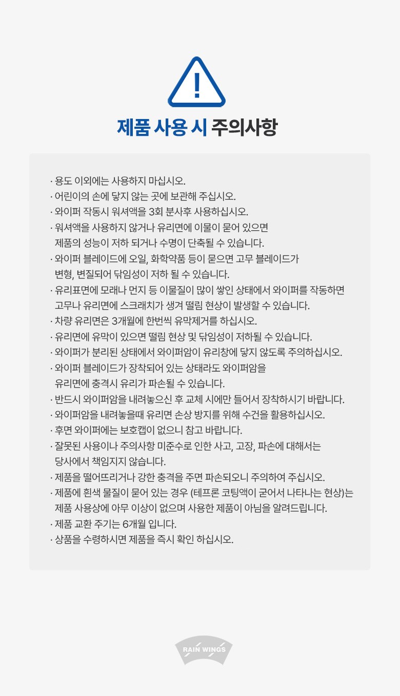 | 품명 및 모델명 | 레인윙스 후방 리어 뒷유리 와이퍼 C516 | 동일모델 출시년월 | 2024. 03 |