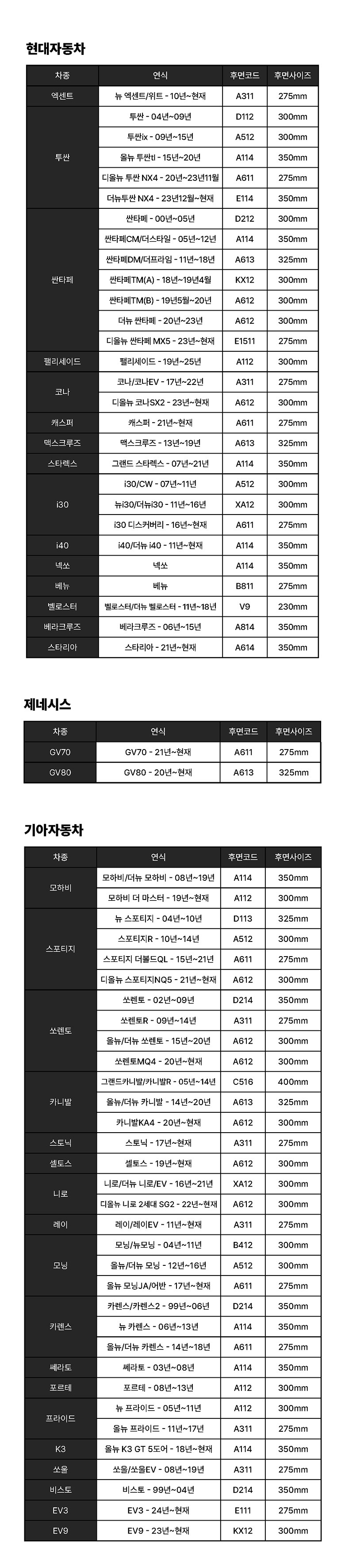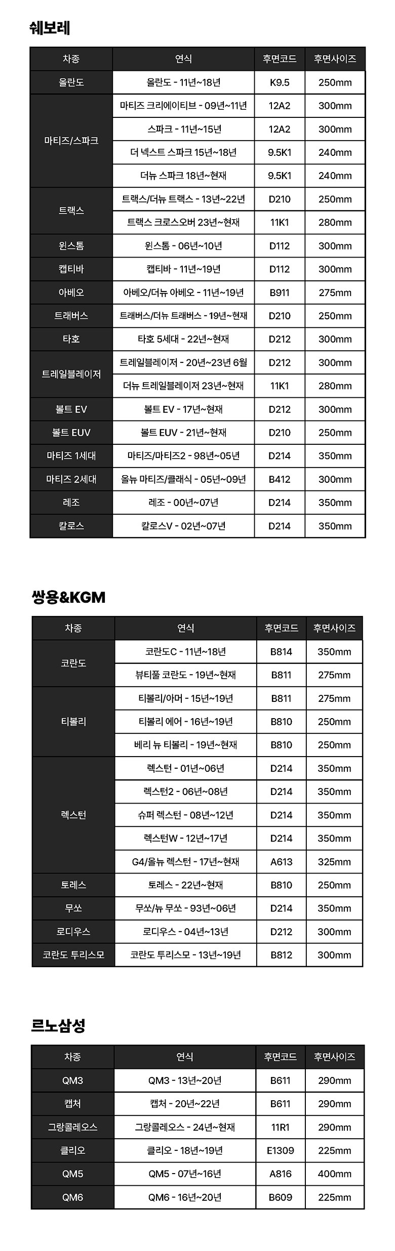 | KC 인증정보(자동차관리법에 따른 자기인증 대상 자동차부품에 한함) | 해당없음 | 제조자(수입자) | 업체미제공 / 주식회사 그란데 |