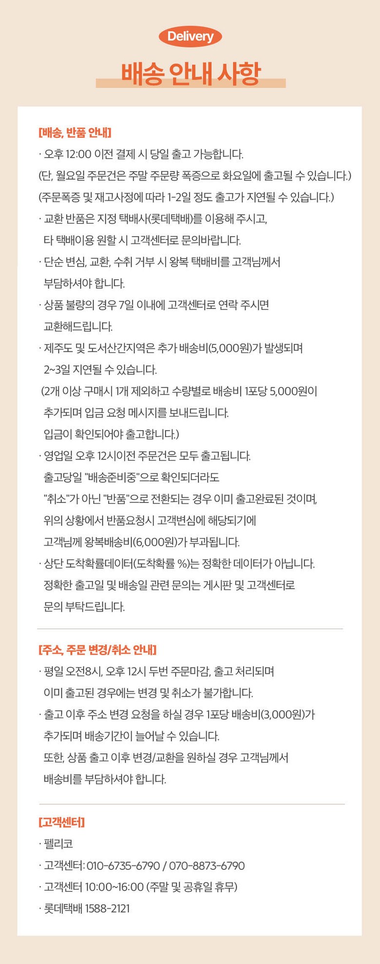 | 교환/반품 비용 (왕복비용) | 3,000원 - 단, 고객 변심의 경우에만 발생 - 도서산간 및 일부 지역 추가비용 발생 |