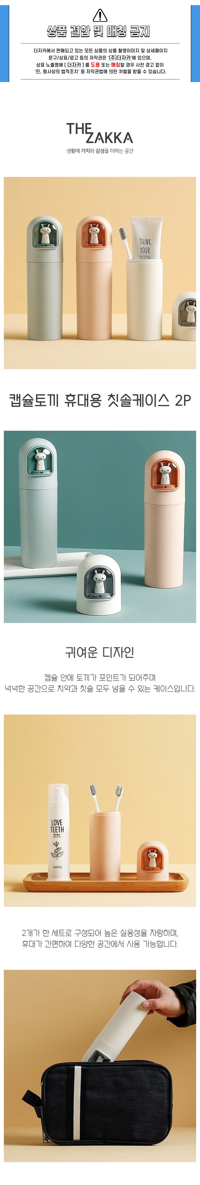 | 품명 및 모델명 | 더자카 캡슐토끼 휴대용 칫솔케이스 FREE | 인증/허가 사항 | 해당없음 |