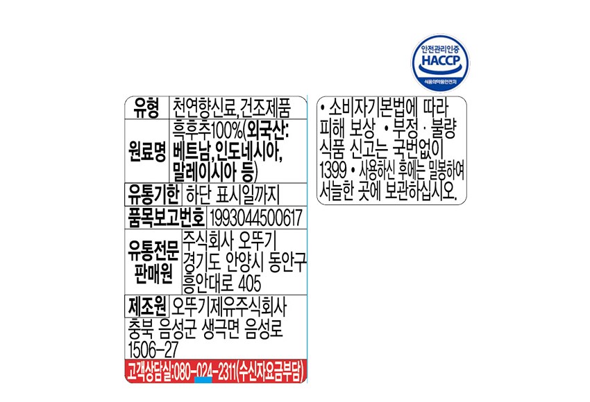 | 제품명 | 순후추 | 식품의 유형 | 컨텐츠 참조 |