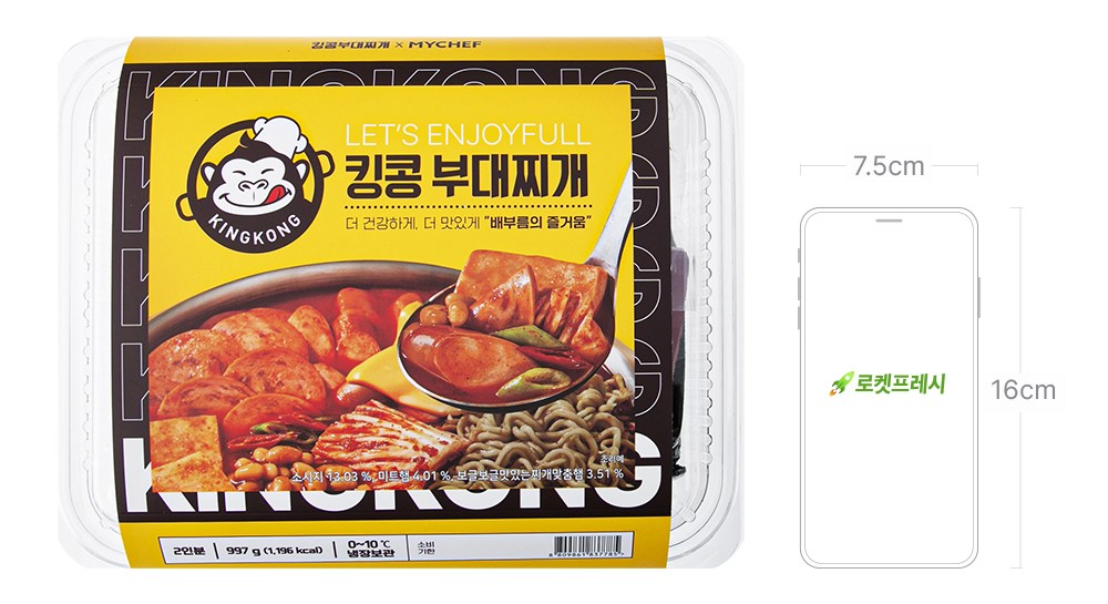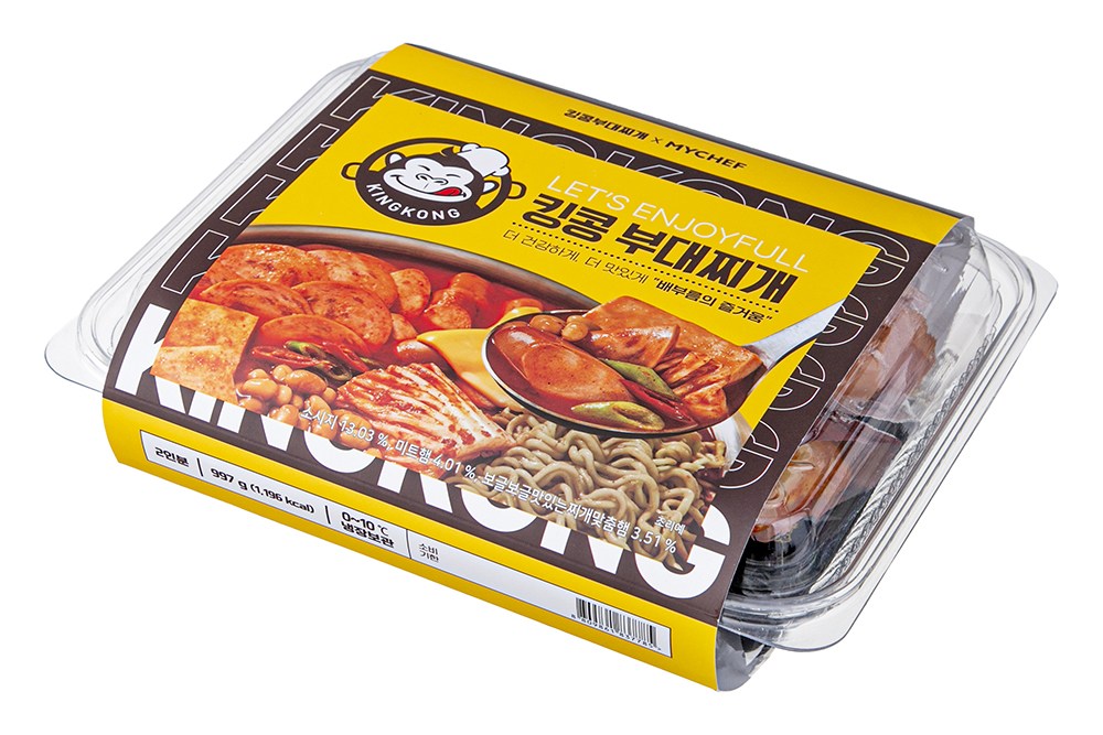 부대찌개 전문점, 킹콩부대찌개의 맛을 이제 집에서 즐겨 보세요. 소시지의 고소함과 김치의 칼칼함이 조화로운 부대찌개예요. 소시지에서 우러나오는 진한 육향이 매력적인데요. 양파, 대파, 라면사리 등 다양한 재료를 아낌없이 넣어 골라 먹는 재미가 쏠쏠하답니다. 냄비에 모든 재료를 넣고 끓이기만 하면 완성되니, 온 가족을 위한 저녁 메뉴로 선택해보세요.