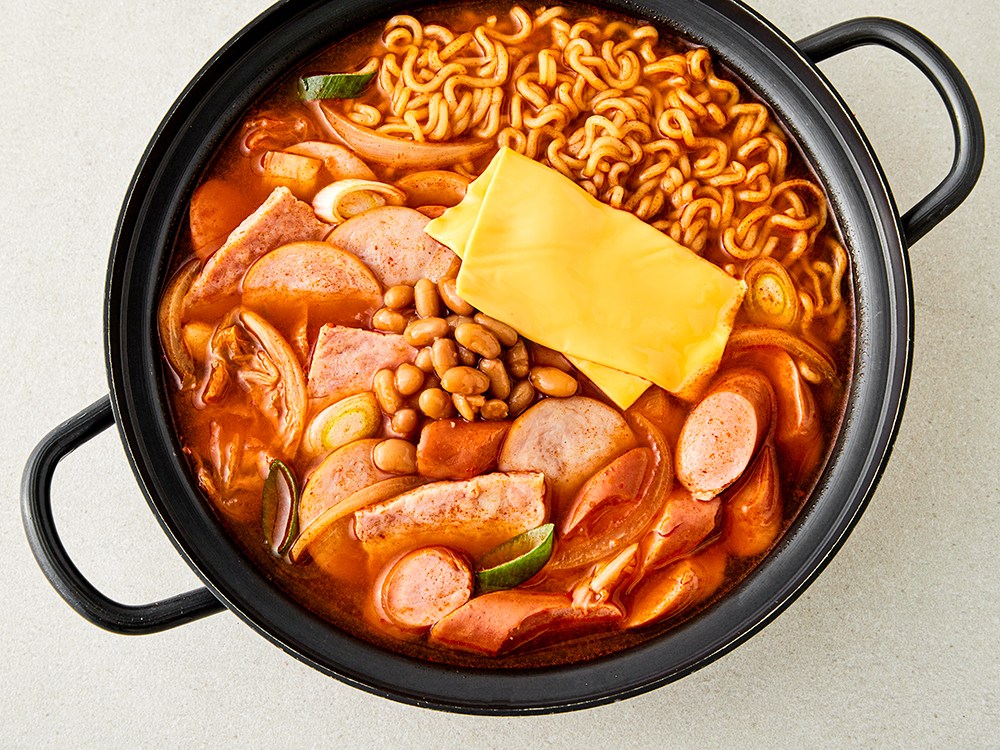 소시지, 김치, 치즈, 라면사리 등으로 구성