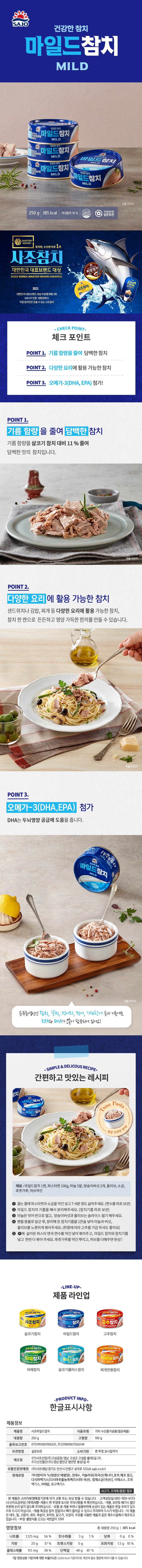 | 제품명 | 사조마일드참치 | 식품의 유형 | 수산물가공품(멸균제품) |