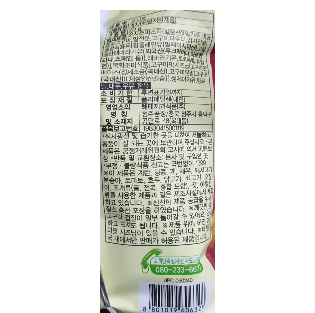 | 포장단위별 내용물의 용량(중량), 수량 | 60g*4개입, 1개 | 원재료명 및 함량 | 컨텐츠 참조 |