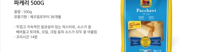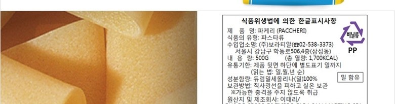 | 제품명 | 데체코 파케리 | 식품의 유형 | 파스타류 |