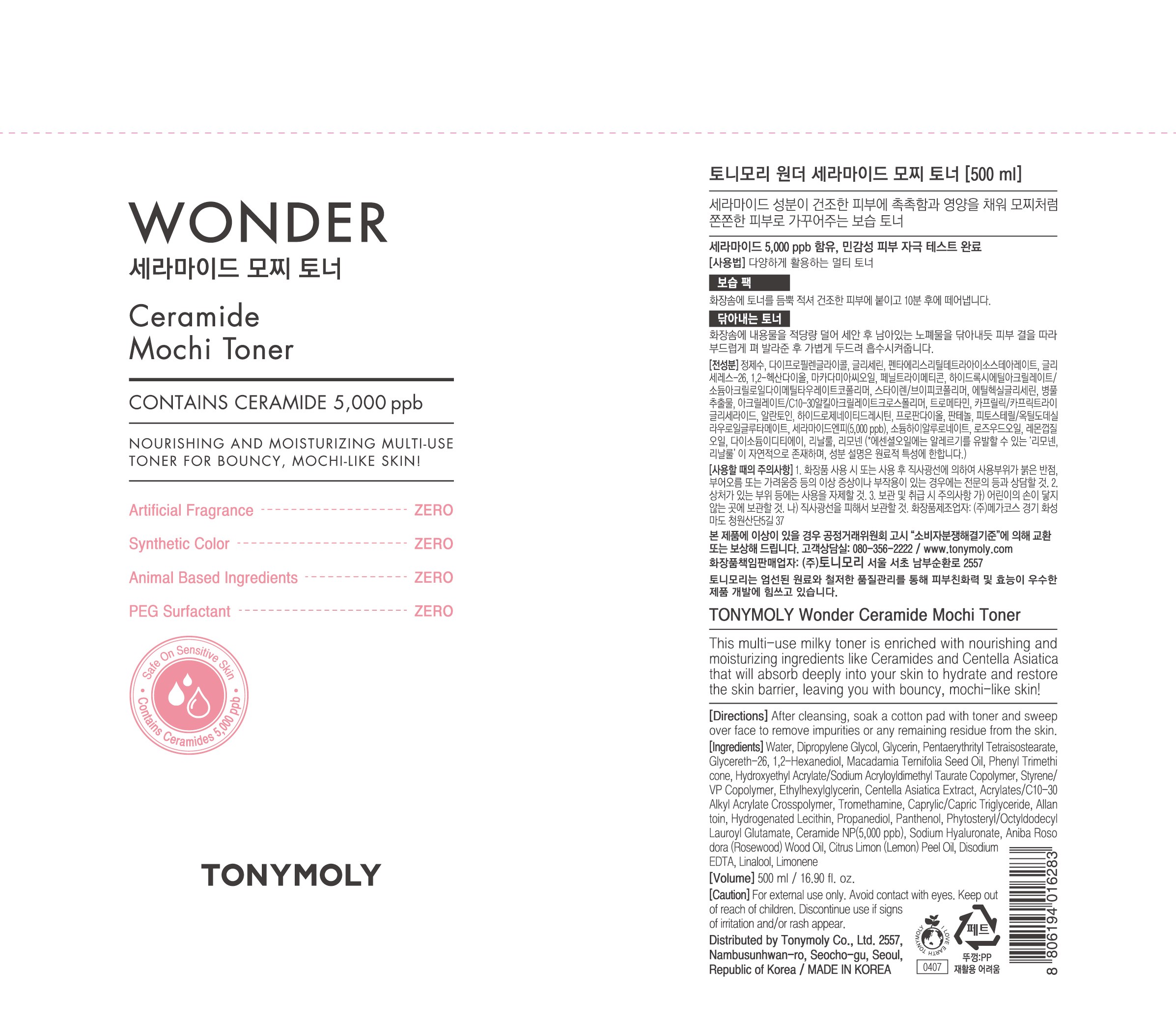 | 용량(중량) | 500ml | 제품 주요 사양 | 모든피부용 |