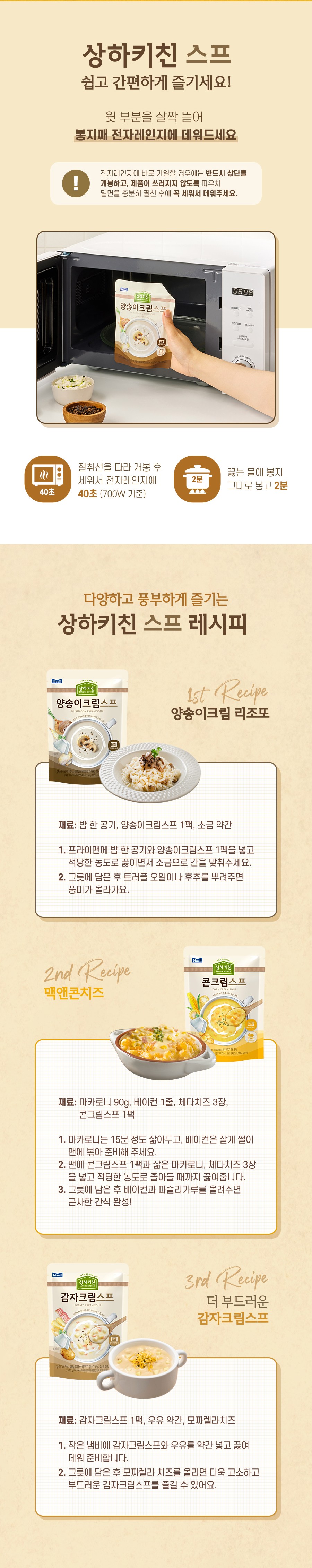 | 제품명 | 상하키친 양송이크림스프 | 식품의 유형 | 컨텐츠 참조 |