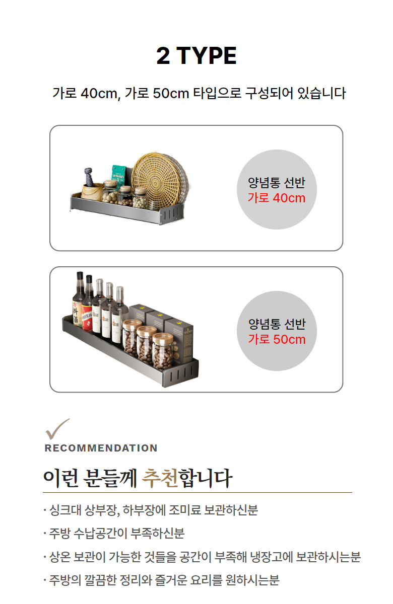 - 수납정리공간 위치: 조리대 윗공간