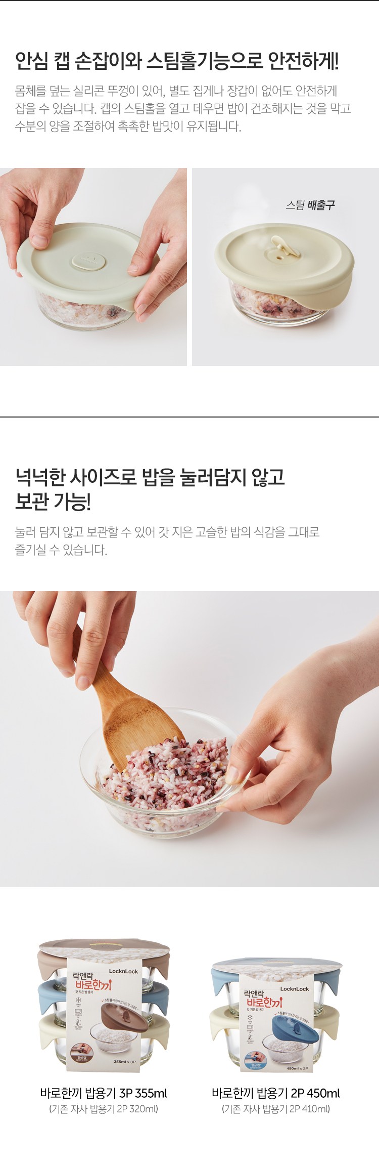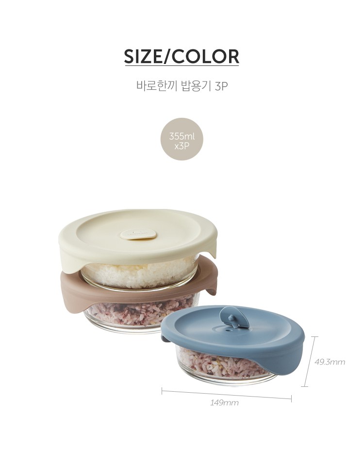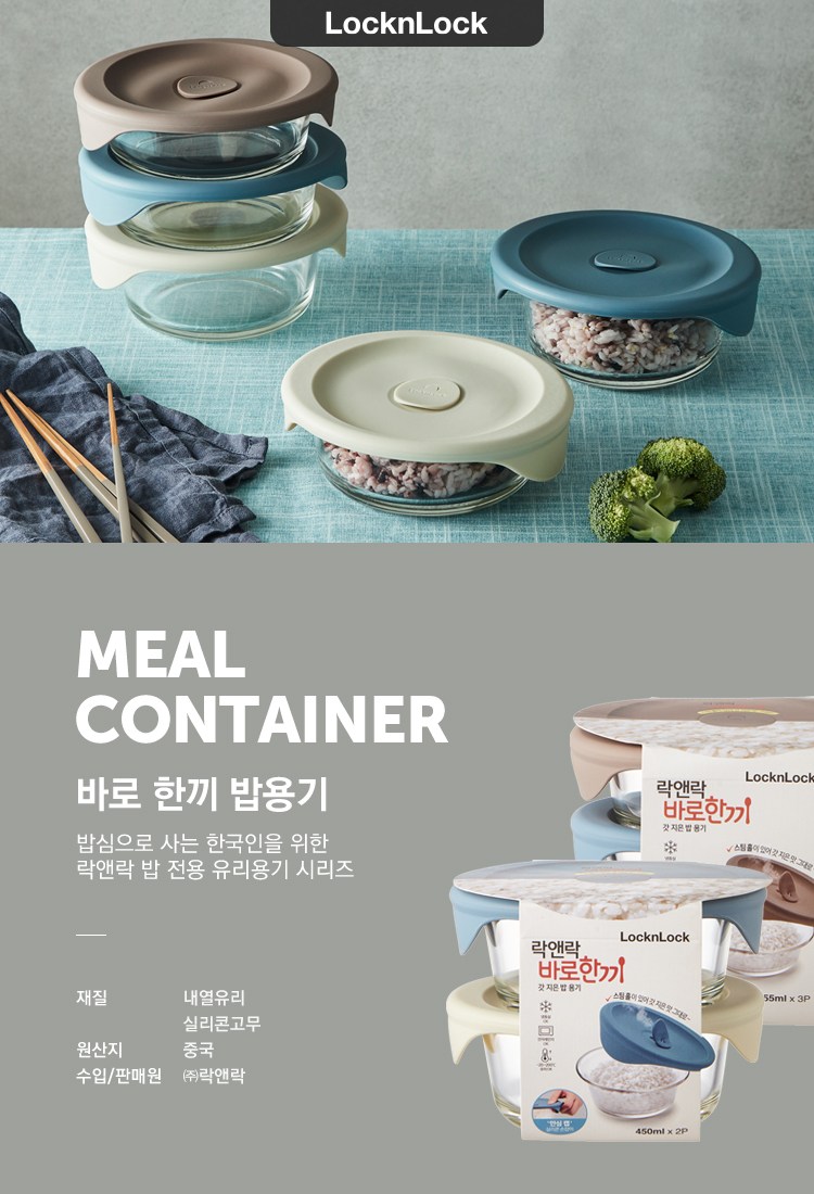 | 품명 및 모델명 | LLG503S3_[온라인전용] 바로한끼 밥용기 355ml 세트 | 재질 | 내열유리, 실리콘고무 |
