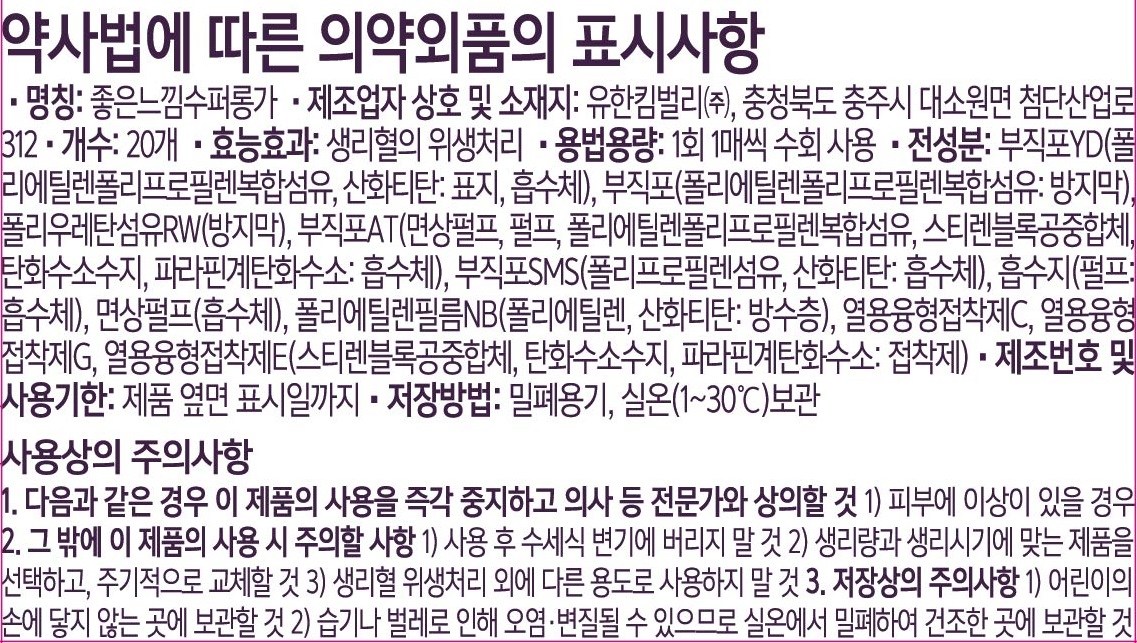 | 제조국(원산지) | 대한민국 | 제조자(수입자) | 유한킴벌리(주) |