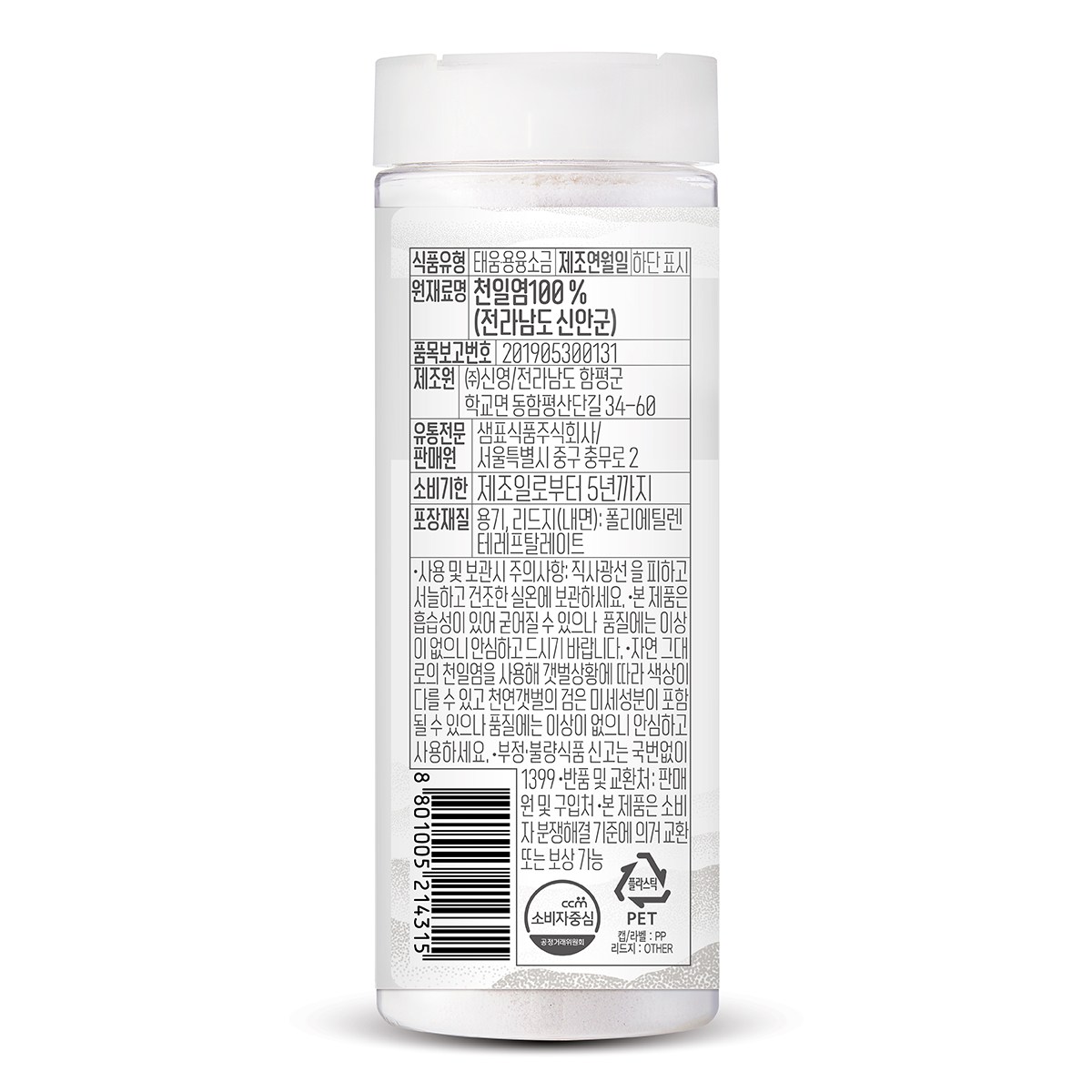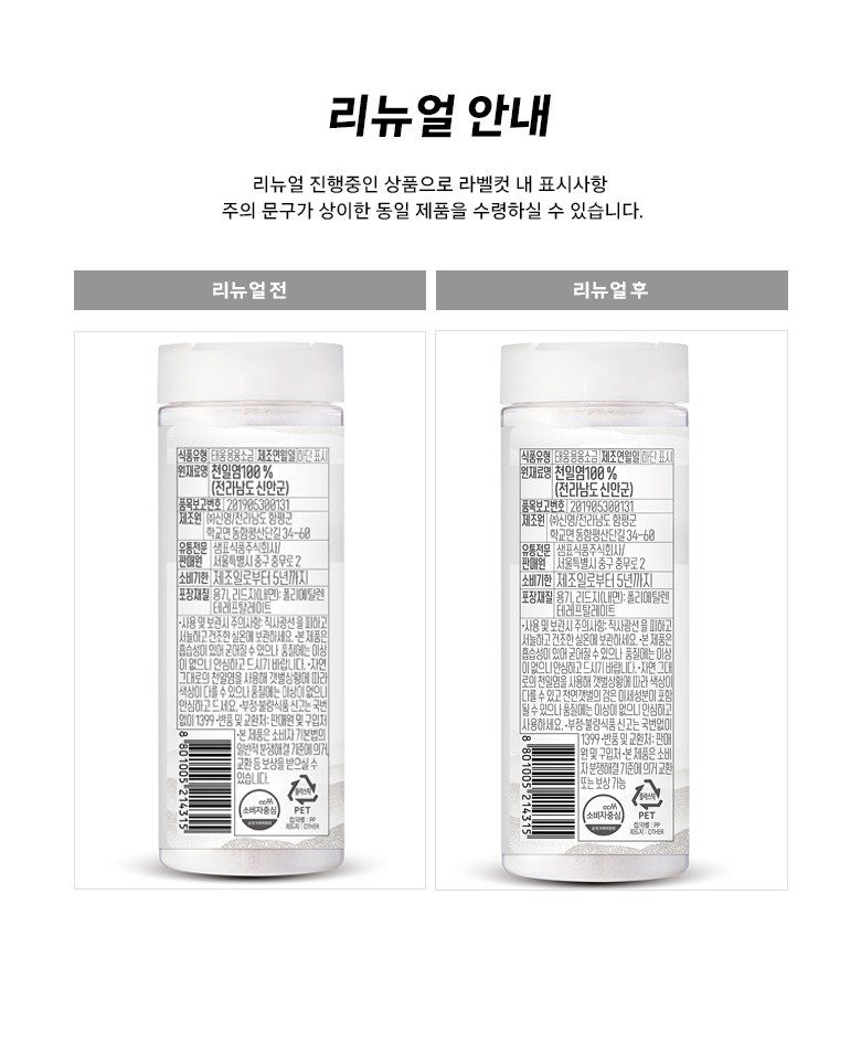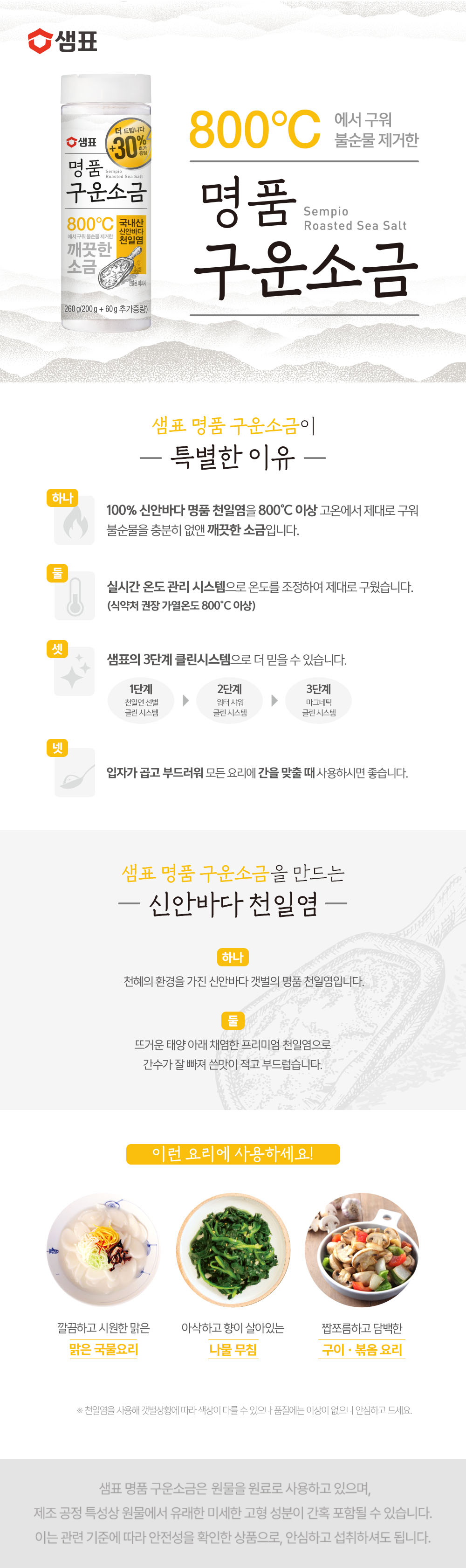 | 제품명 | 샘표 명품구운소금 | 식품의 유형 | 컨텐츠 참조 |