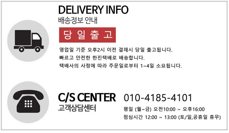| 배송기간 | ㆍ도서산간 지역 등은 배송에 3-5일이 더 소요될 수 있습니다. - 천재지변, 물량 수급 변동 등 예외적인 사유 발생 시, 다소 지연될 수 있는 점 양해 부탁드립니다. | ||
