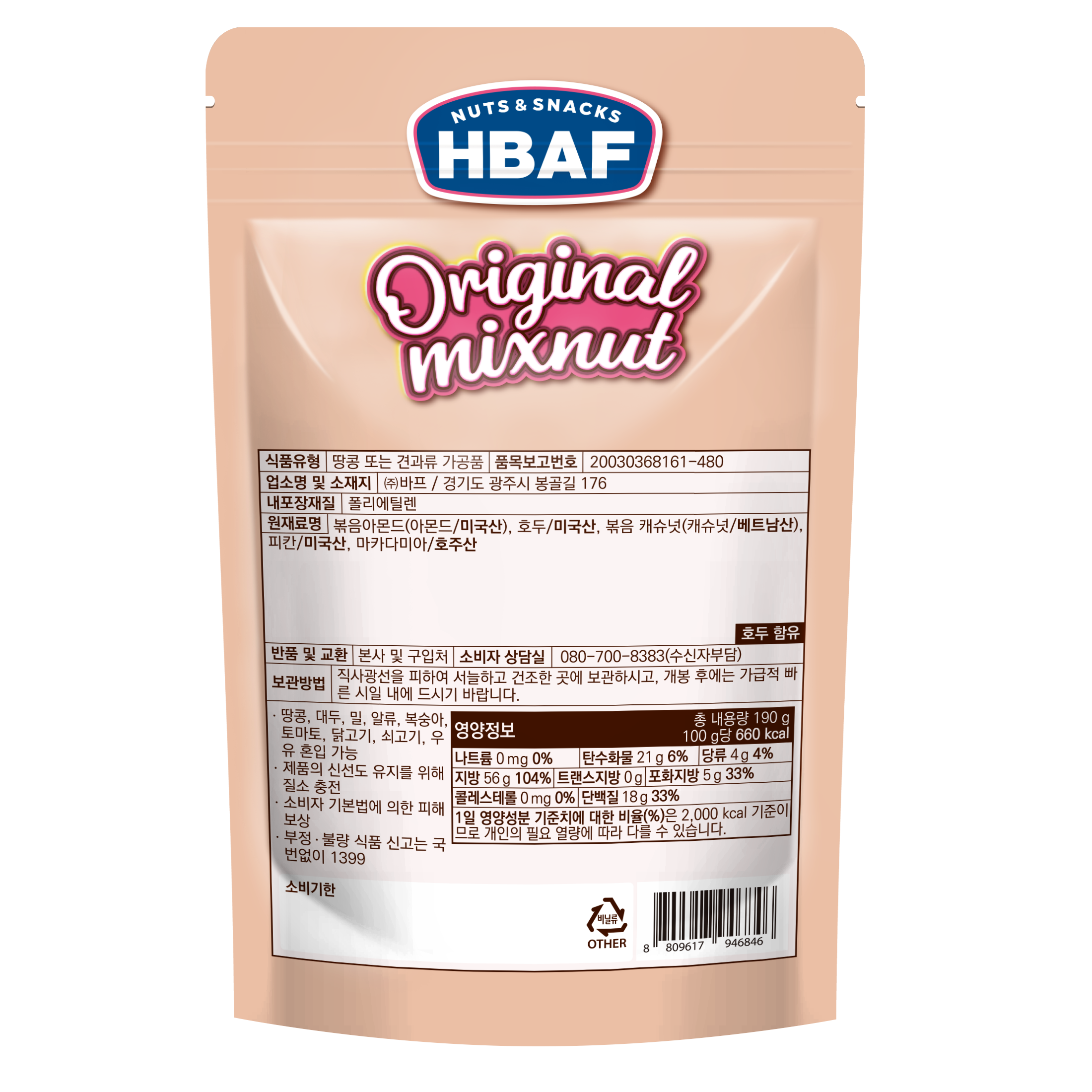 - 견과 종류: 혼합견과(믹스넛)