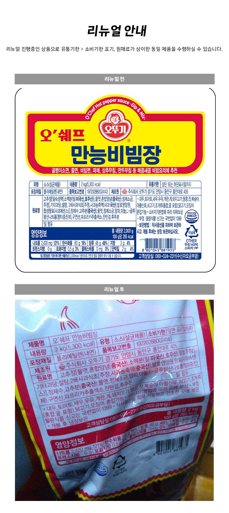 | 제품명 | 오'쉐프 만능비빔장 | 식품의 유형 | 컨텐츠 참조 |