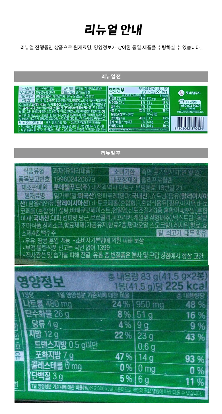 | 포장단위별 내용물의 용량(중량), 수량 | 83g, 5개 | 원재료명 및 함량 | 컨텐츠 참조 |