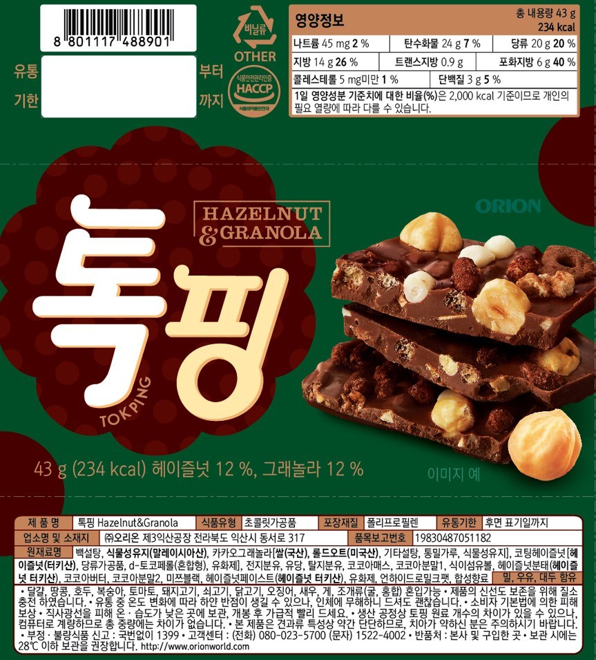 | 포장단위별 내용물의 용량(중량), 수량 | 43g, 6개 | 원재료명 및 함량 | 컨텐츠참조 |
