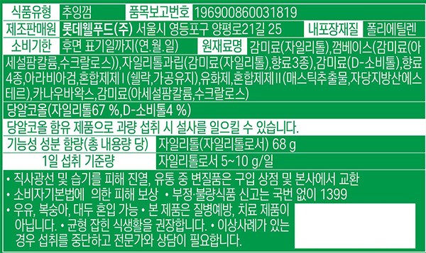 | 제품명 | LOTTE 자일리톨 알파 오리지날 | 식품의 유형 | 컨텐츠 참조 |