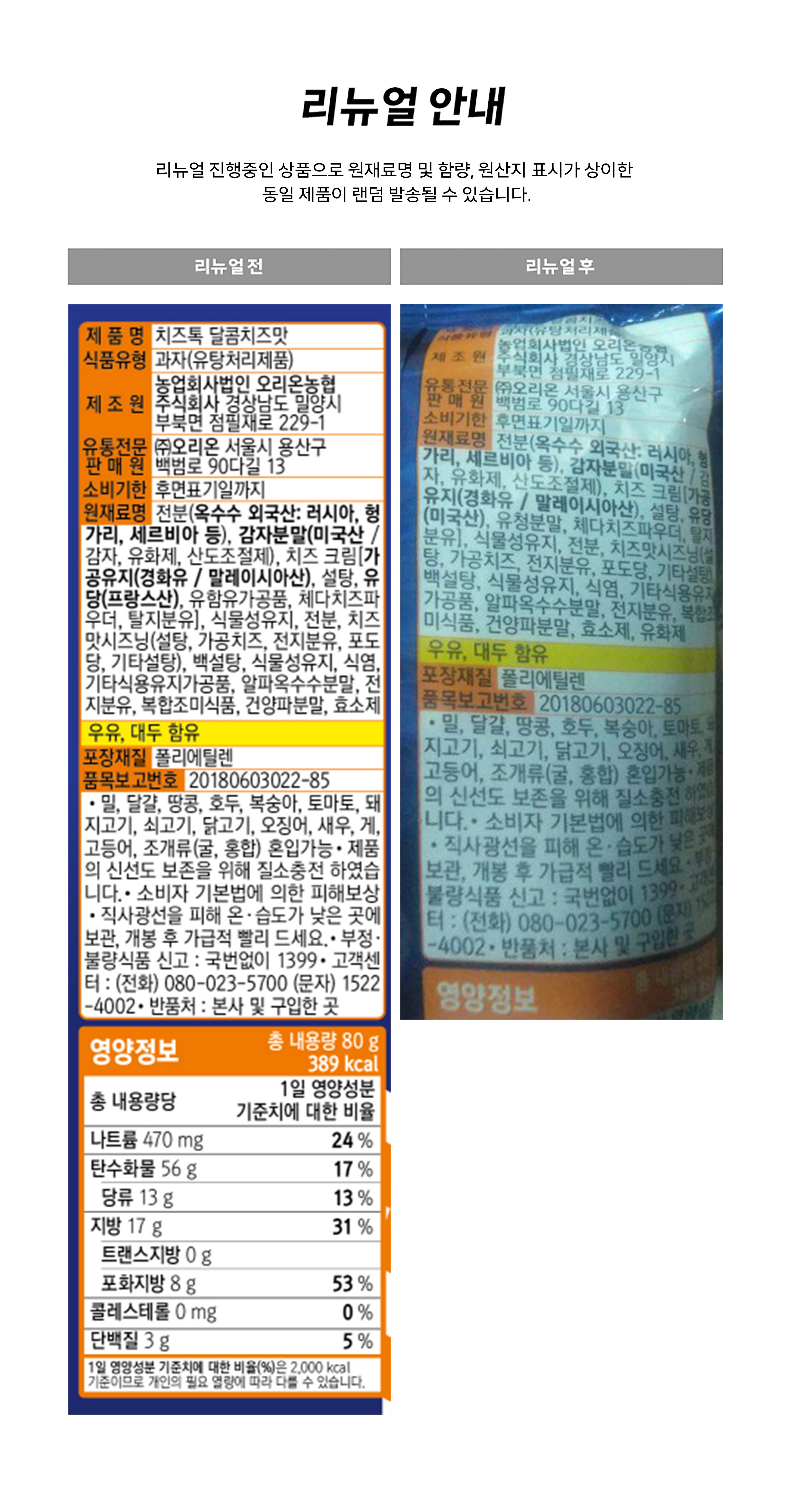 | 제품명 | 컨텐츠 참조 | 식품의 유형 | 컨텐츠 참조 |