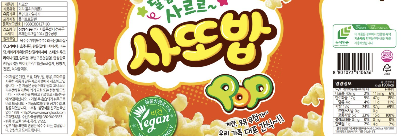 | 제품명 | 컨텐츠 참조 | 식품의 유형 | 컨텐츠 참조 |