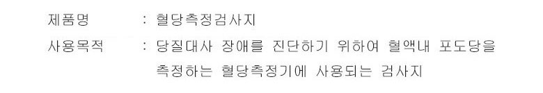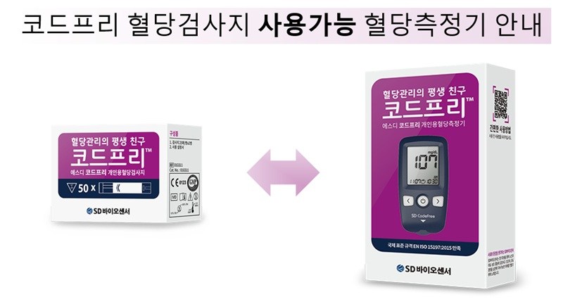 | 품명 및 모델명 | 개인용혈당검사지/ SD CodeFree™ Blood Glucose Test Strip (01GS11) | 허가∙인증∙신고번호 (의료기기법에 따른 허가∙인증∙신고 대상 의료기기에 한함) | 체외 제허 13-1518호 |
