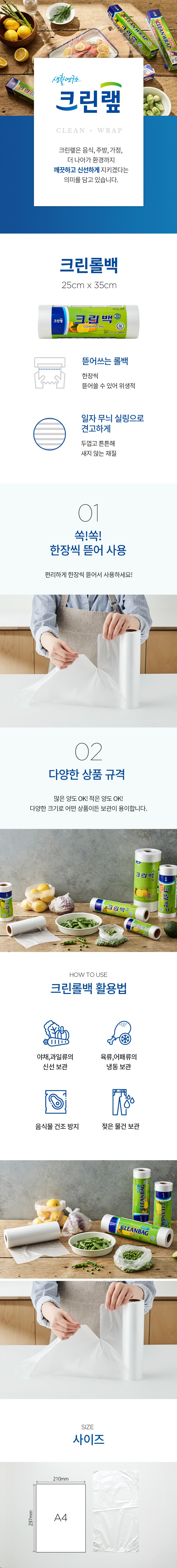 | 품명 및 모델명 | 크린백 롤타입 | 재질 | 고밀도 폴리에틸렌 (HDPE) |