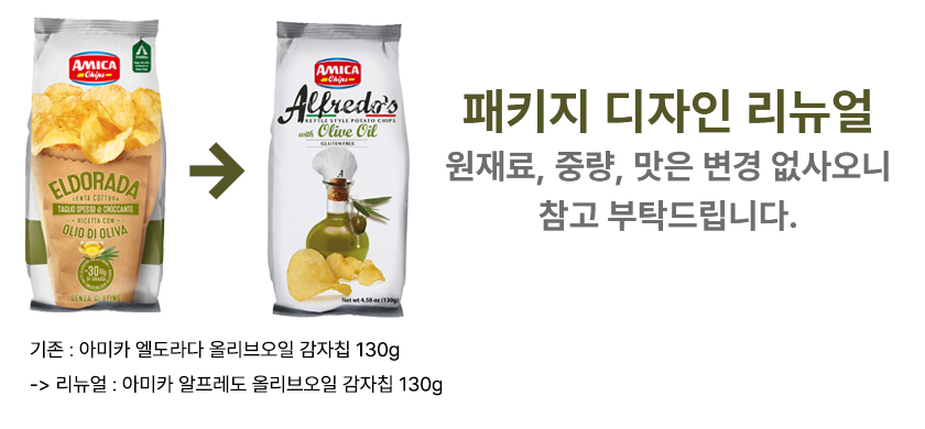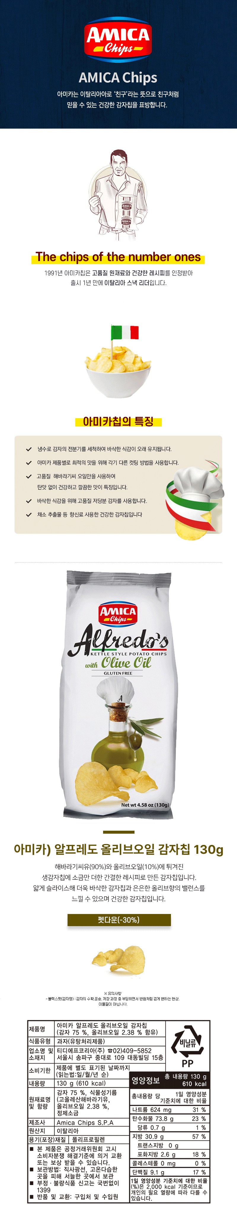 | 제품명 | 아미카 알프레도 올리브오일 감자칩 | 식품의 유형 | 컨텐츠 참조 |