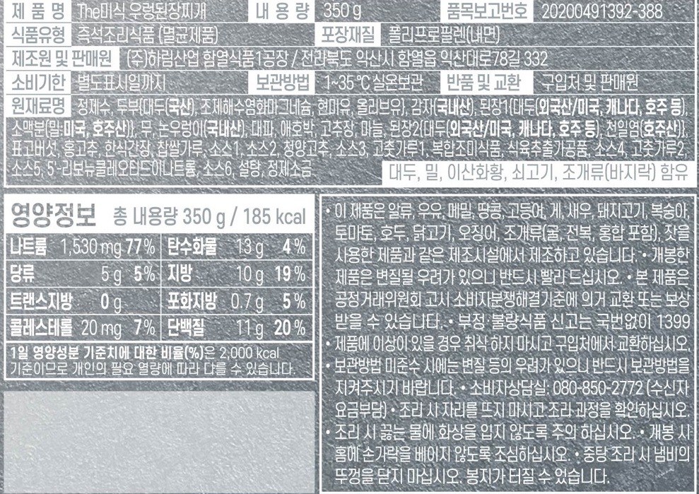 | 포장단위별 내용물의 용량(중량), 수량 | 350g x 4개,1개 | 원재료명 및 함량 | 컨텐츠 참조 |