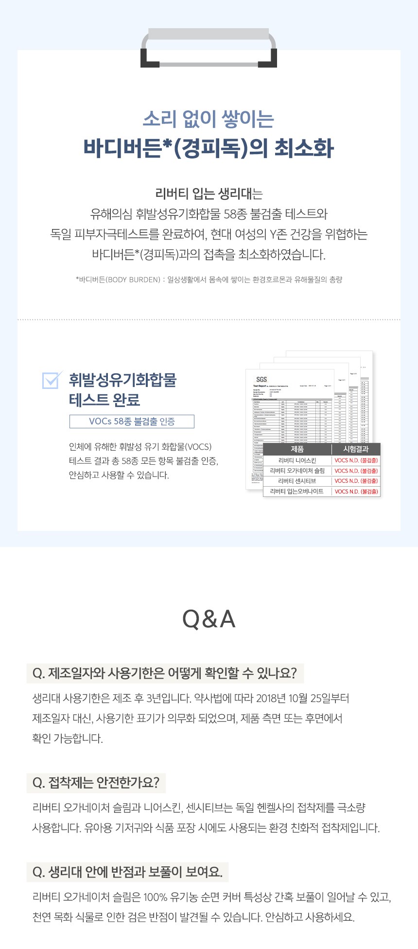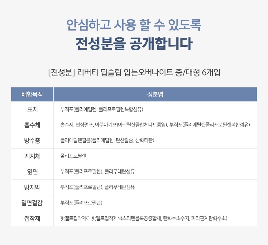 | 품명 및 모델명 | 리버티 딥슬립 입는 오버나이트 대형 | 인증/허가 사항 | 의약외품 |