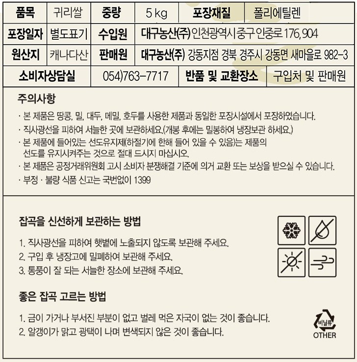| 품목 또는 명칭 | 컨텐츠 참조 | 포장단위별 내용물의 용량(중량),수량,크기 | 5kg x 1개 |