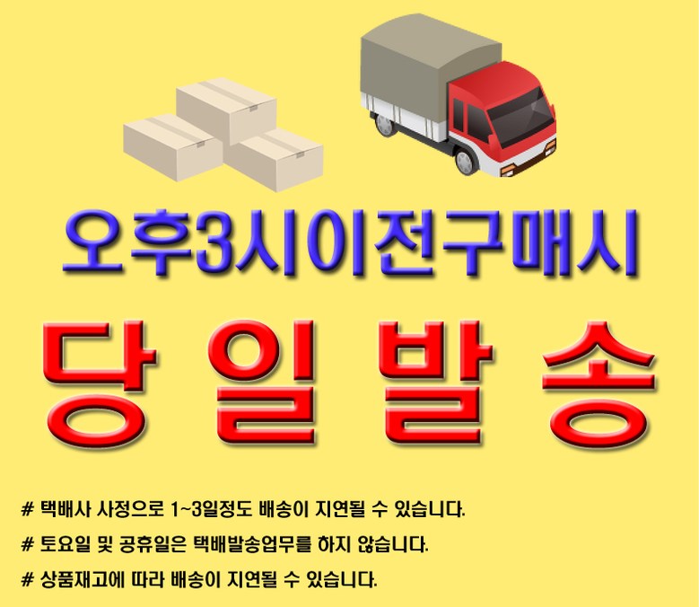 | 배송기간 | ㆍ도서산간 지역 등은 배송에 3-5일이 더 소요될 수 있습니다. - 천재지변, 물량 수급 변동 등 예외적인 사유 발생 시, 다소 지연될 수 있는 점 양해 부탁드립니다. | ||