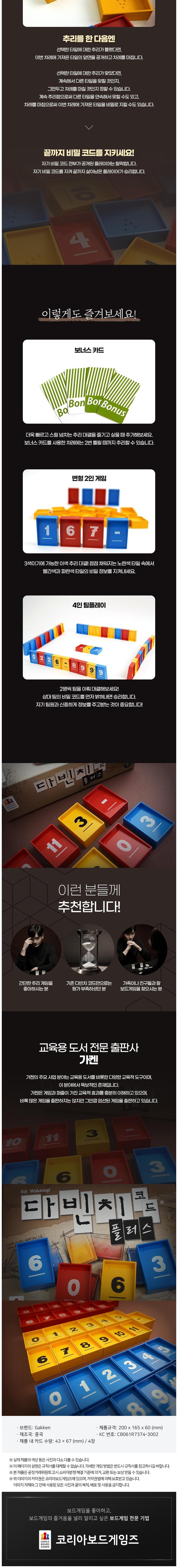 | 품명 및 모델명 | 코리아보드게임즈 다빈치 코드 플러스 | KC 인증정보 | CB061R7374-3002 |