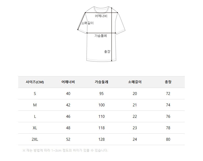 - 소매 길이: 반소매(어깨~팔꿈치 길이)