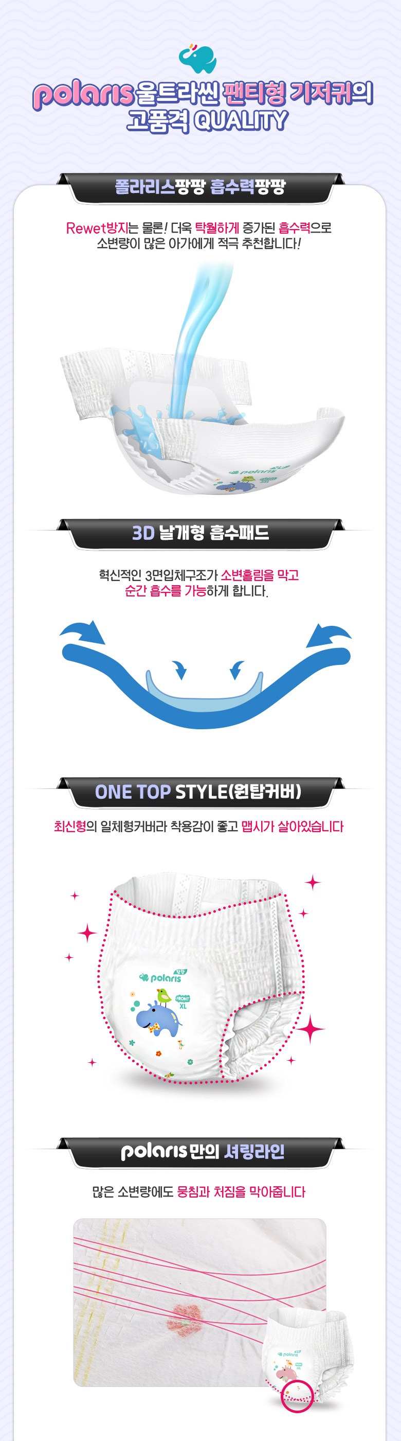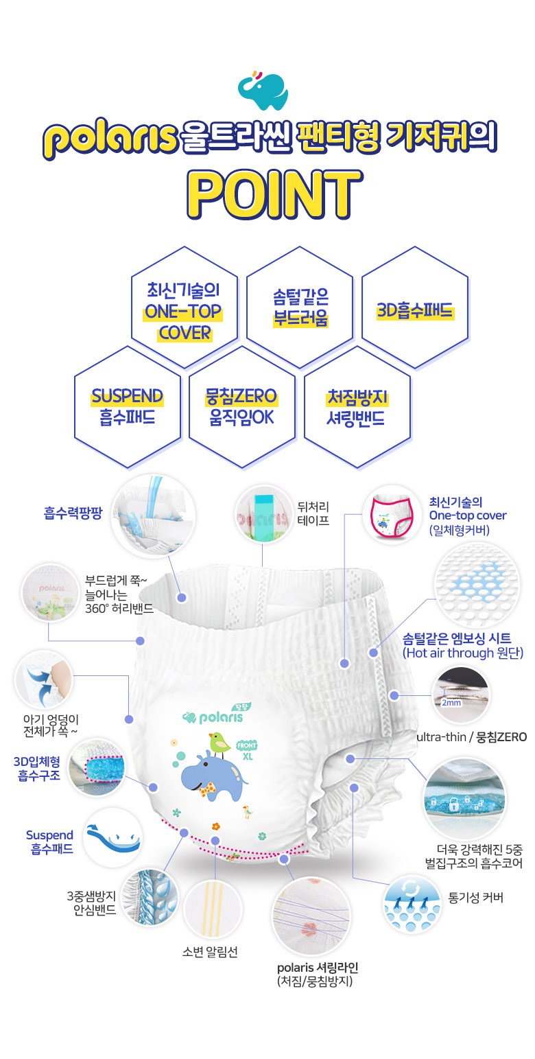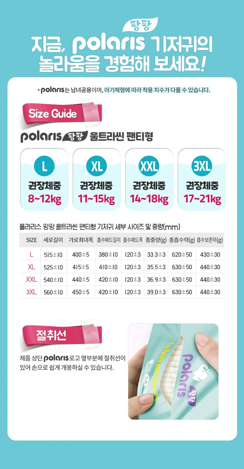 | 품명 및 모델명 | 폴라리스 팡팡 울트라씬 팬티형 기저귀 | KC 인증정보 | 대상없음 |