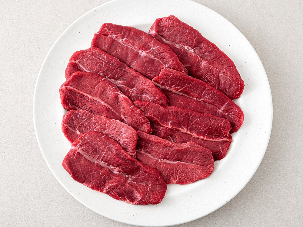 구이용으로 정형된 부채살이에요. 마블링과 힘줄이 퍼져있는 모양새가 마치 부채 같다 하여 붙여진 이름이지요. 육즙이 풍부하여, 씹을수록 진한 육향이 입안 가득 퍼진답니다. 기호에 맞게 구워, 쫀득한 식감과 구수한 감칠맛을 즐겨보세요.