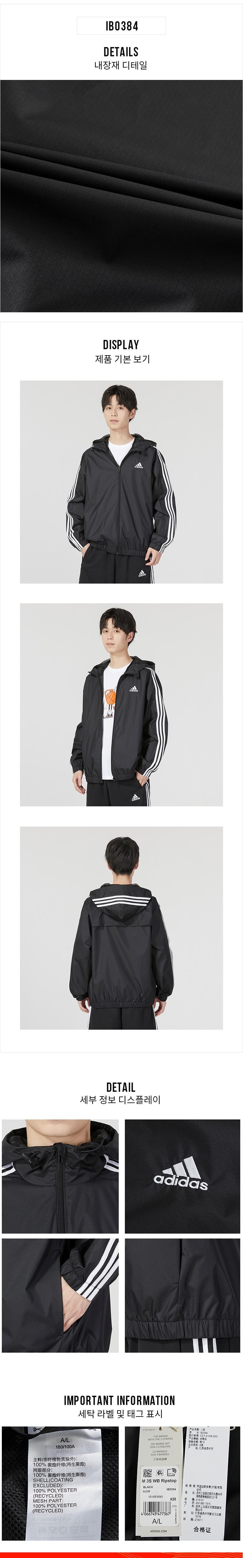 아디다스 남성 M 3S WB 립스탑 스포츠 캐주얼 후드 재킷 IB0384