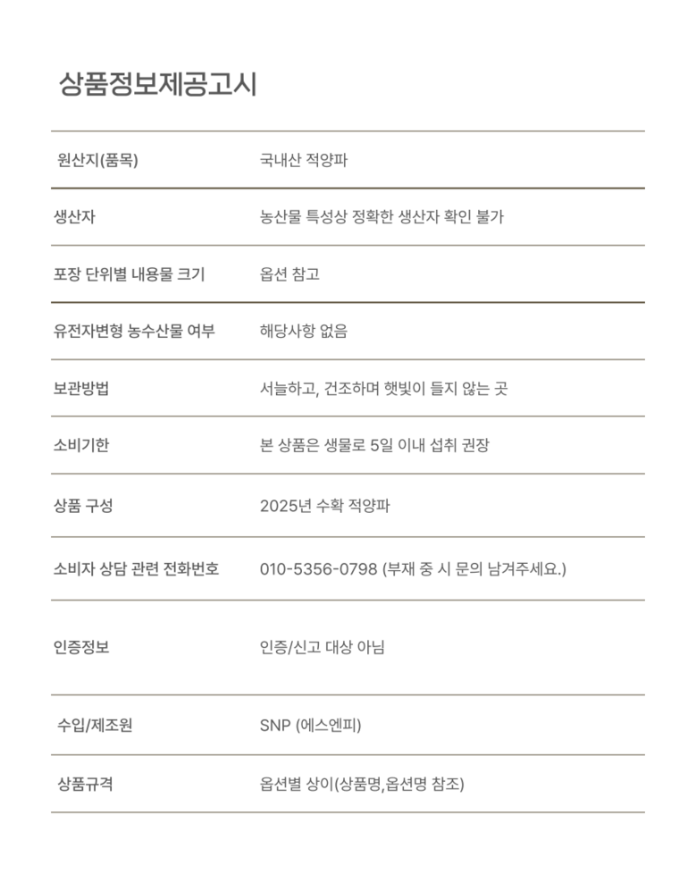 | 제조연월일, 소비기한 또는 품질유지기한 | 상품 상세페이지 참조 | 세부 품목군별 표시사항 | 상품 상세페이지 참조 |
