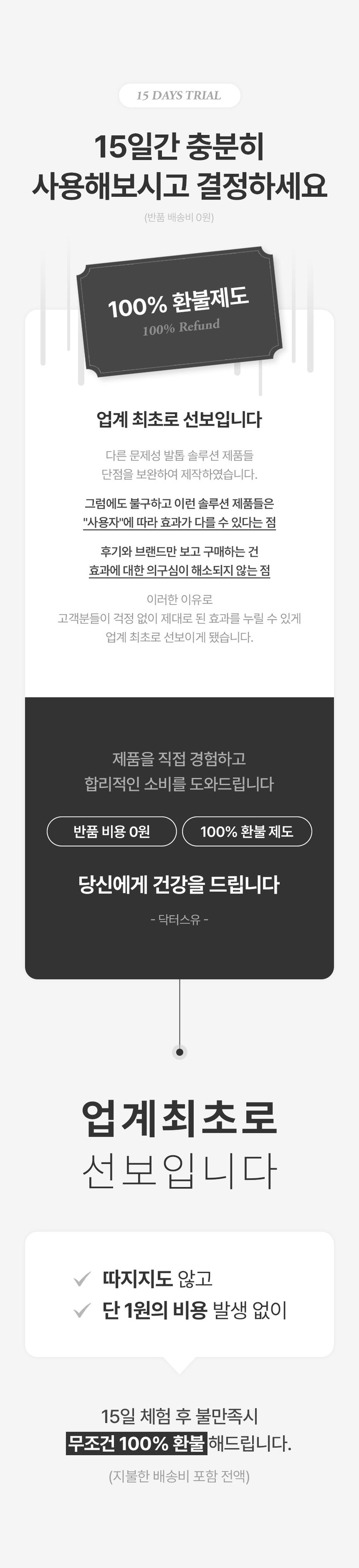 | 교환/반품 신청 기준일 | ㆍ단순변심에 의한 교환/반품은 제품 수령 후 7일 이내까지, 교환/반품 제한사항에 해당하지 않는 경우에만 가능 (배송비용과 교환/반품 비용 왕복배송비 고객부담) ㆍ상품의 내용이 표시·광고의 내용과 다른 경우에는 상품을 수령한 날부터 3개월 이내, 그 사실을 안 날 또는 알 수 있었던 날부터 |