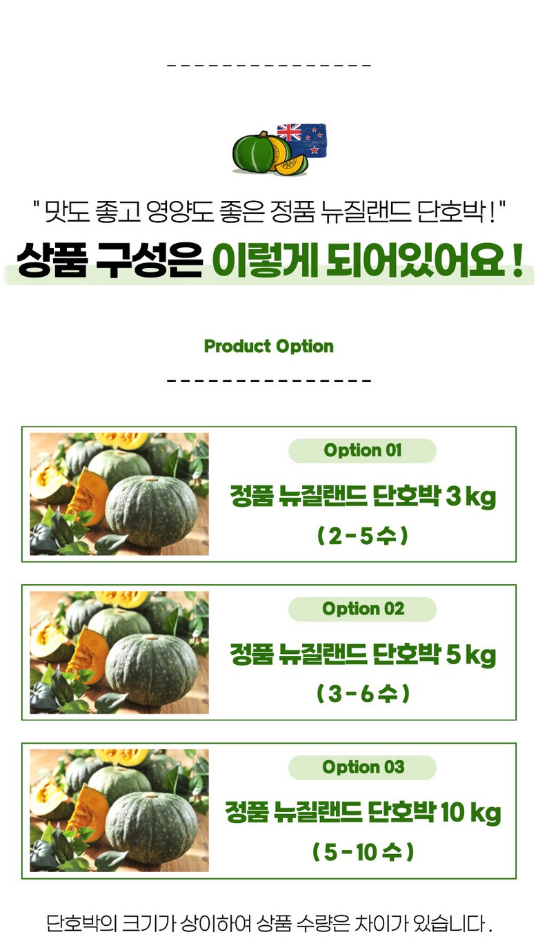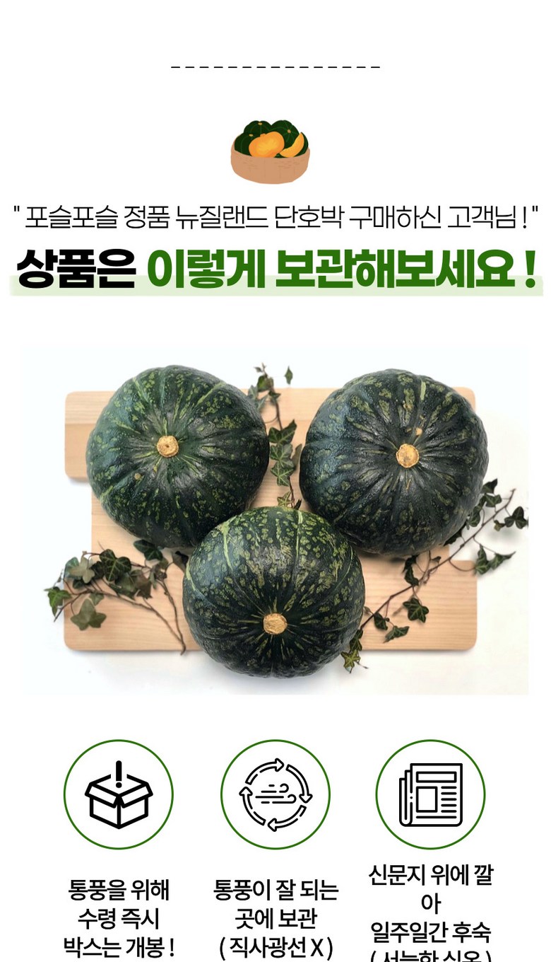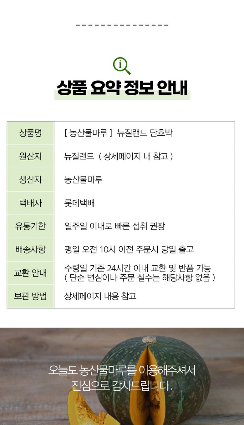 | 품목 또는 명칭 | 단호박 3kg, 5kg, 10kg | 포장단위별 내용물의 용량(중량),수량,크기 | 단호박 3kg, 5kg, 10kg |