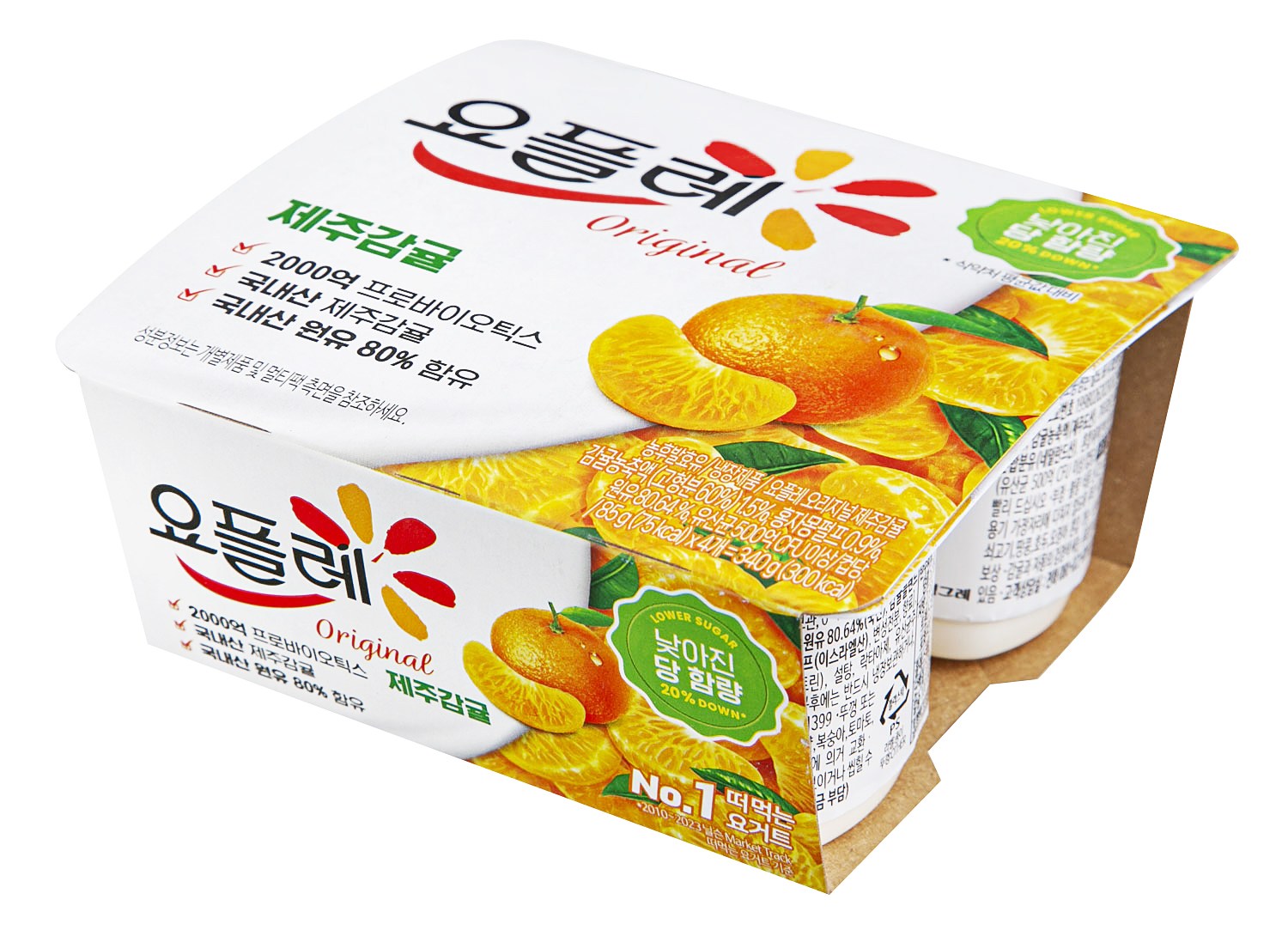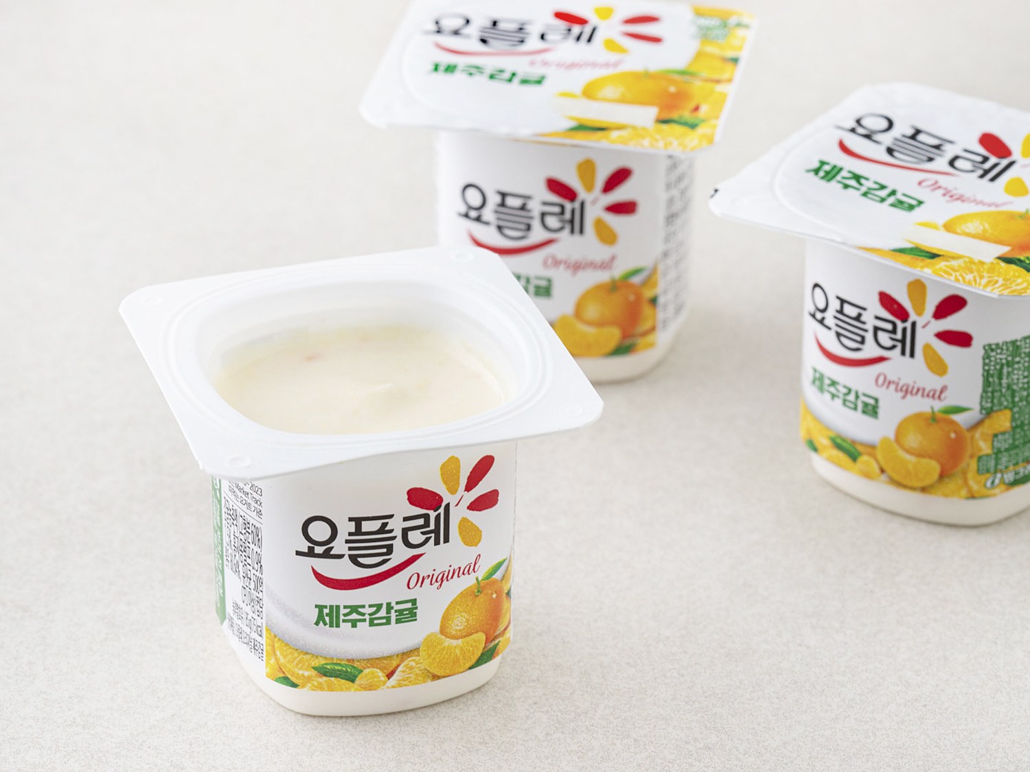 향긋하고 달콤한 요플레 감귤이에요. 감귤블렌드를 사용해 상큼한 풍미가 일품이지요. 컵에 담겨있어 손으로 들고 먹기 좋답니다. 그대로 간식으로 먹어도 맛있고, 시리얼을 더해 디저트로 활용해도 좋아요.