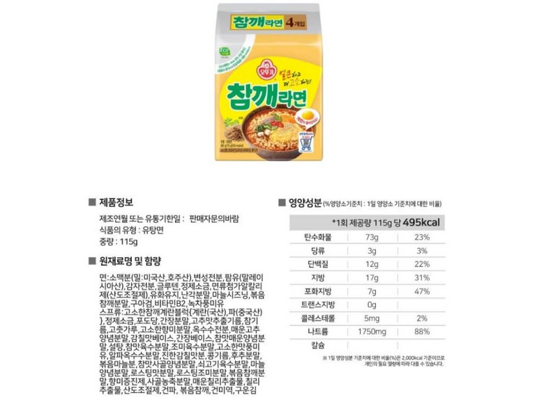 | 생산자 및 소재지 | 상품 상세페이지 참조 | 제조연월일, 소비기한 또는 품질유지기한 | 상품 상세페이지 참조 |