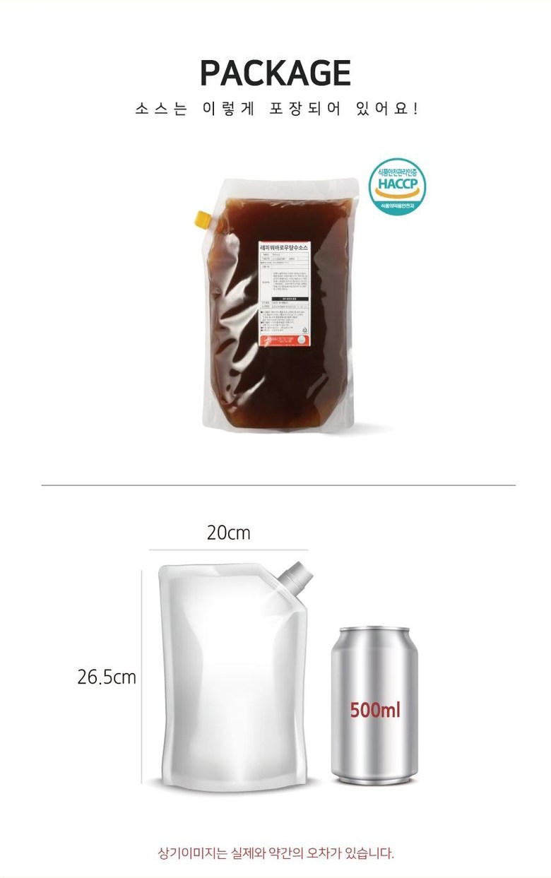 | 포장단위별 내용물의 용량(중량), 수량 | 1kg | 원재료명 및 함량 | 정제수,설탕,발효식초[정제수,주정,맥아엑기스(겉보리/국산),포도당,기타설탕],간장[아미노산액{탈지대두(외국산:인도산,미국산,중국산등)},정제수,양조간장원액{탈지대두(외국산:인도산,미국산,중국산등),소맥(미국산),천일염},천일염(호주산),기타과당,카라멜색소Ⅲ],변성전분,덱스트린,토마토케첩[정제수,토마토페이스트(외국산/미국,칠레,중국등),기타과당,발효식초(주정,발효영양원),정제소금(국산),설탕],레몬농축과즙,정제소금,무수구연산,치킨엑기스,대파분말,잔탄검,5'-리보뉴클레오티드이나트륨,카라멜색소Ⅲ |
