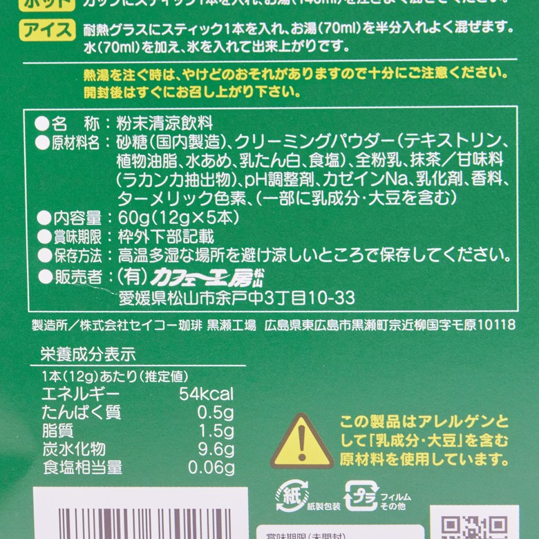 | 제품명 | 봇짱커피 말차 카푸치노 | 식품의 유형 | 상품상세 참조 |