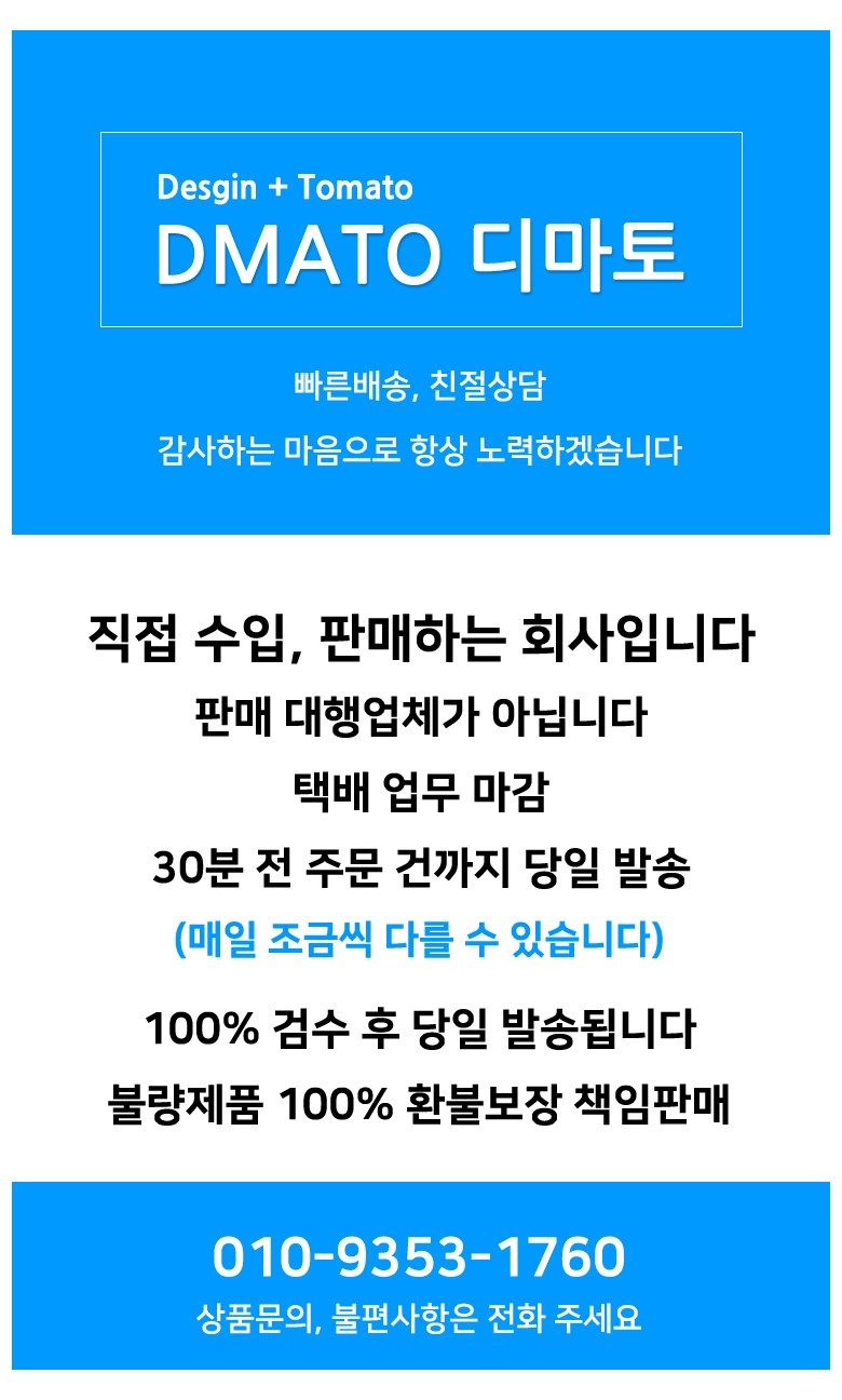 - ㆍ모니터 해상도의 차이로 인해 색상이나 이미지가 실제와 달라, 고객이 단순 변심으로 교환/반품을 무료로 요청하는 경우
