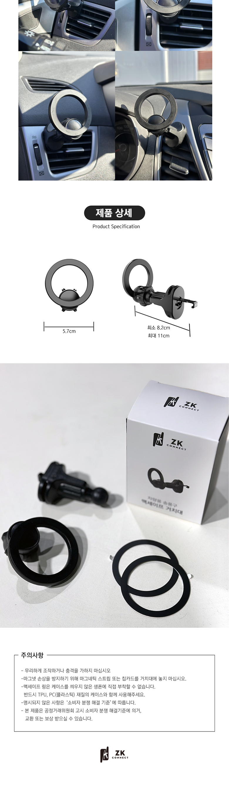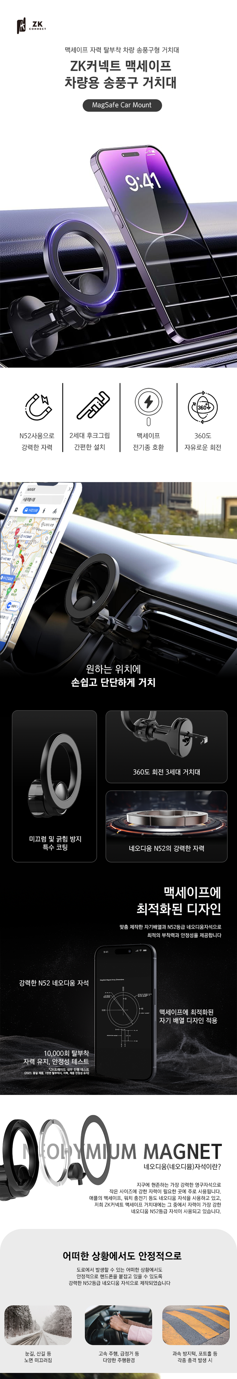 ZK커넥트 맥세이프 차량용 송풍구 거치대