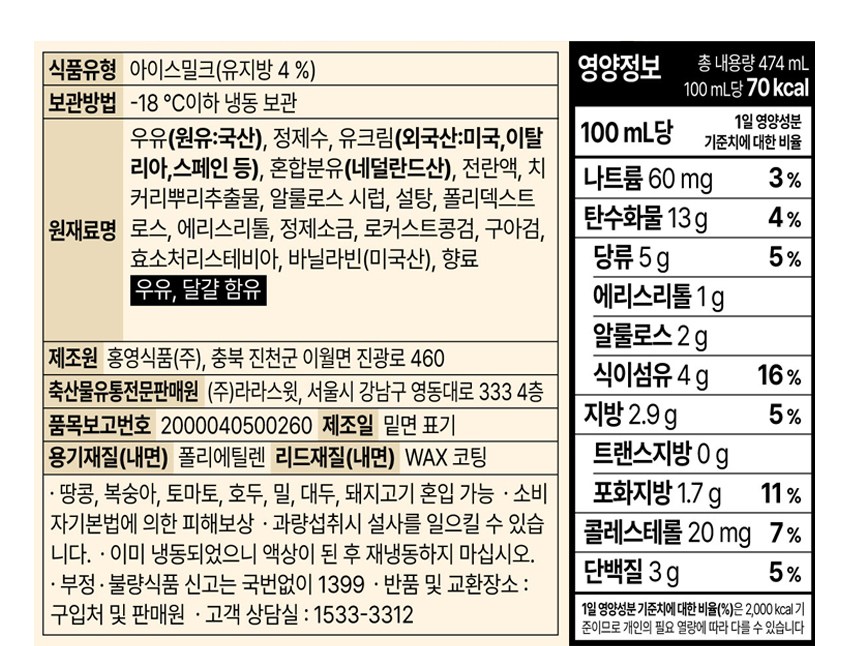 | 제품명 | 라라스윗 바닐라빈 | 식품의 유형 | 컨텐츠 참조 |