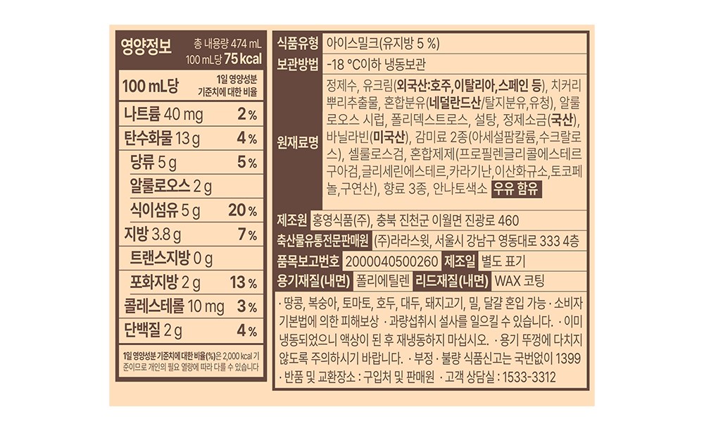 | 제품명 | 라라스윗 바닐라빈 | 식품의 유형 | 컨텐츠 참조 |