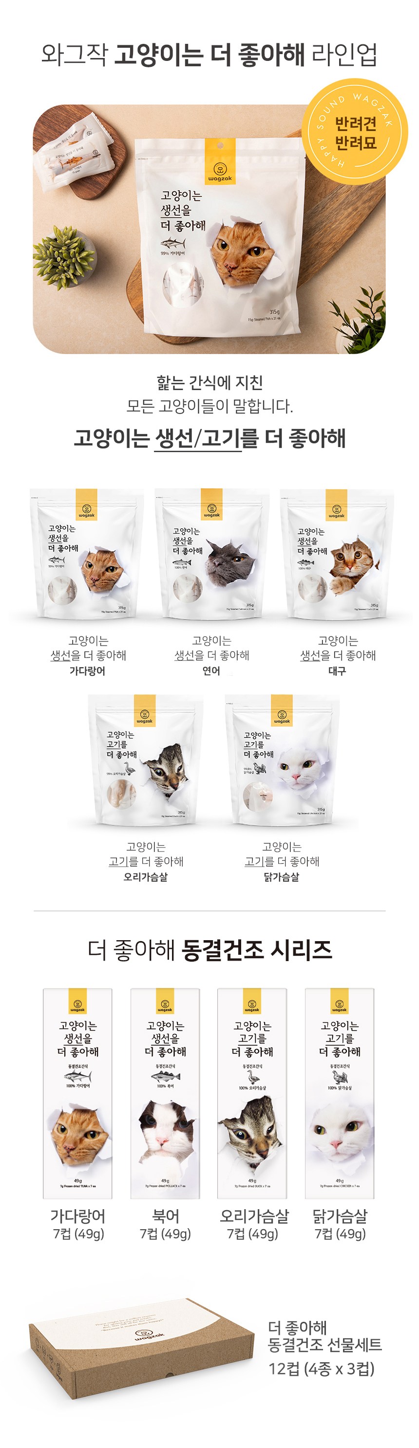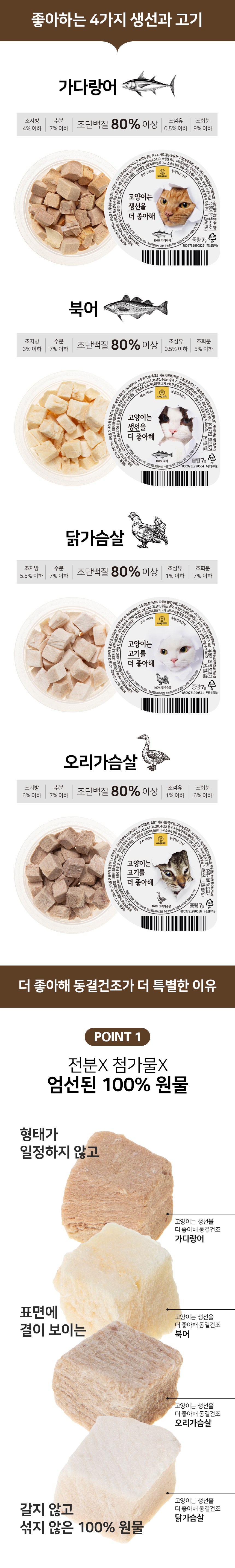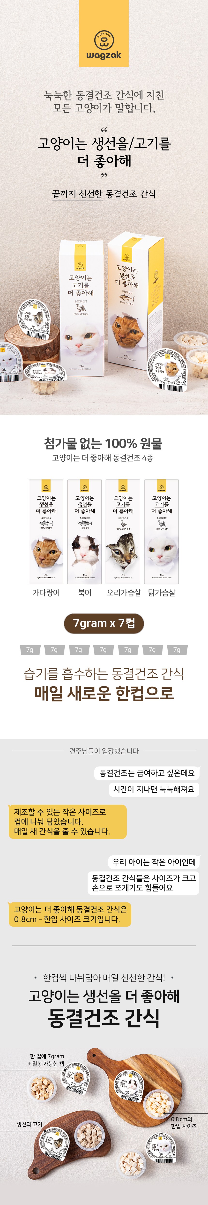 | 품명 및 모델명 | 와그작 고양이는 생선을 더 좋아해 동결건조 가다랑어 | 인증사항 | 사료관리법에 따른 성분등록번호 : 컨텐츠 참조 |