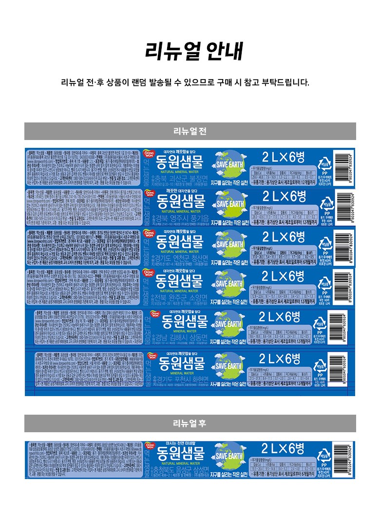 | 포장단위별 내용물의 용량(중량), 수량 | 2L x 36개 | 원재료명 및 함량 | 컨텐츠 참조 |