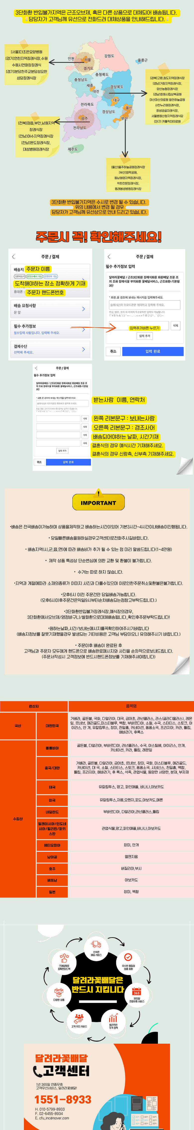 | 배송방법 | 업체직송 | 배송비 | 무료배송 - 도서산간 지역 배송불가 |